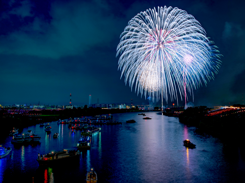 東京最大の大玉「尺五寸玉」を打ち上げるいたばし花火大会。