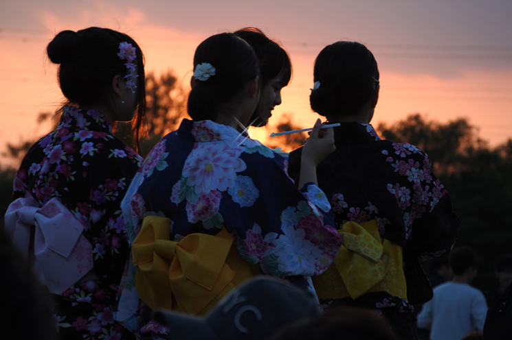 夕日をバックに、かき氷を手に観覧場所を探す浴衣姿の女の子たち。一人の横顔がシルエットで見え、話し掛ける女の子がスプーンストローを掲げたその瞬間、まさにこの一瞬しかないタイミングを見事に捉えたスナップショットのお手本のような作品です。アンダー目の露出が夕映えを色濃くし、作品全体をイマジネイティブなものにしています。沈みゆく太陽の光を受けて、ほんの1か所だけクロスフィルター効果が出ているところもファンタスティック、素敵な作品です。