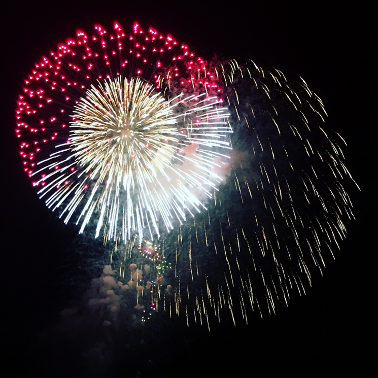 「おーい、今夜は花火を観ながら庭でご飯にするぞ」なんて号令の下、普段は皆それぞれに忙しく、なかなか食事を共にすることができない家族が集まって、だーれも花火を見ていないけれど、お父さんが一人で話しているようにも見えるけれど、もしかしたら、お父さんそのハナシさっきも聞いたよー、とか言われているかも知れないけれど。