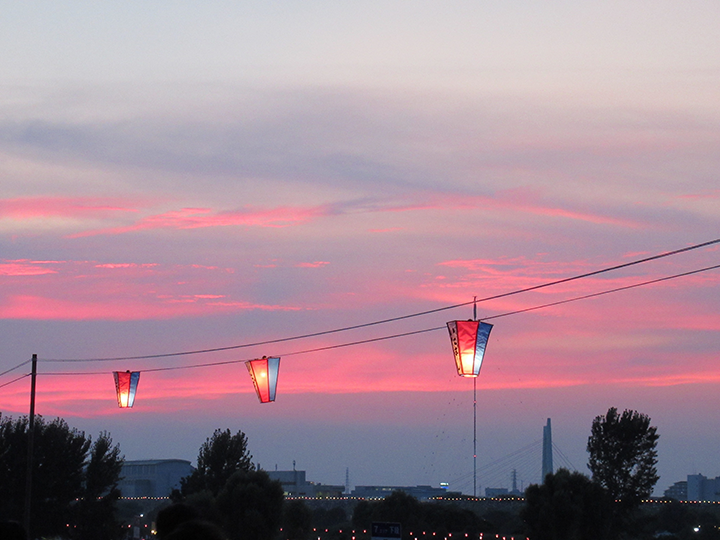 女性審査委員が真っ先に「キレーイ!」と声を上げた作品です。一般に、自動で色味を補正してしまうデジタルカメラでは夕焼けはその再現が難しい被写体の一つ。夕映えの雲のグラデーションが打ち上げへの期待感を饒舌に物語っています。