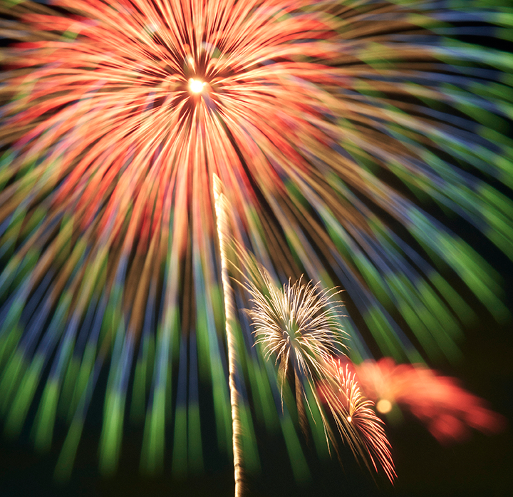 この写真にもしっかりと花火の始まり、爆発の瞬間が捉えられています。