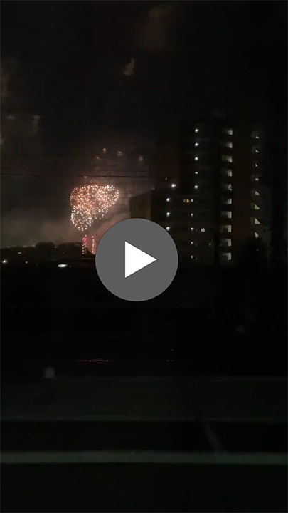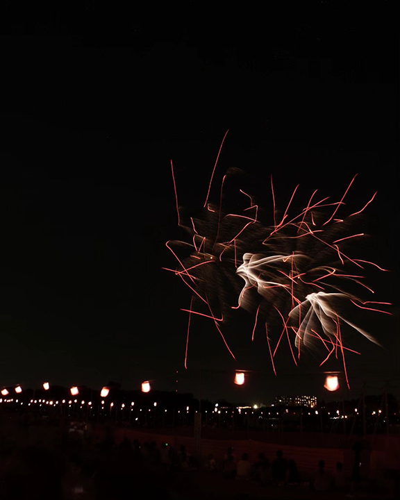スマホカメラの望遠ズームで画面が揺れて、遠い記憶の花火のような効果を生んでいます。