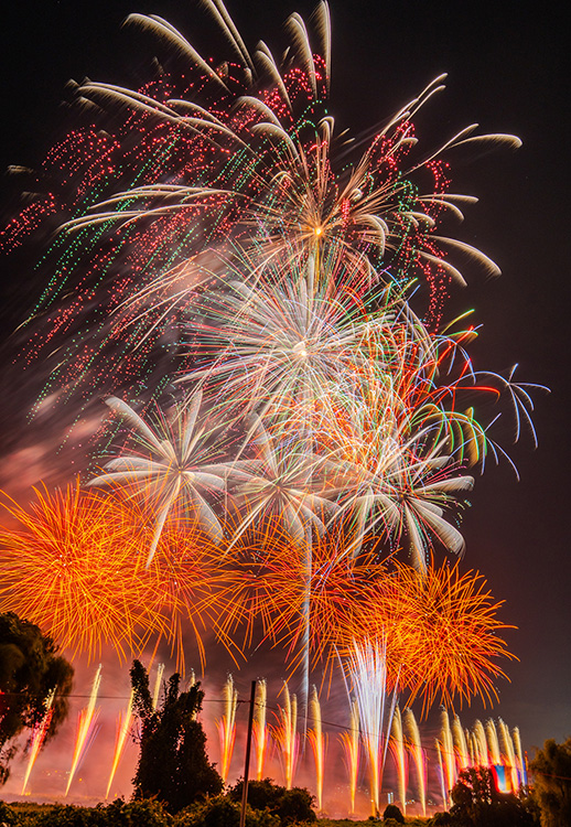 大フィナーレを捉えた一枚は、隙のない構図と引き締まった露出で格調高い作品になりました。特に露出オーバーで白トビしやすいナイアガラの滝と打ち上げ花火を破綻なく共存させる手腕はお見事。