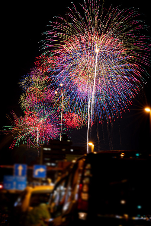 まだ明るさの残る青い空に打ち上がるオープニングの花火。このブルーが作り出す世界の柔らかい雰囲気は心を捉えて離しません。下部に客席を配した見事な構図と空、花火の露出コントロールで生み出した、絵画のような魅力的な作品。